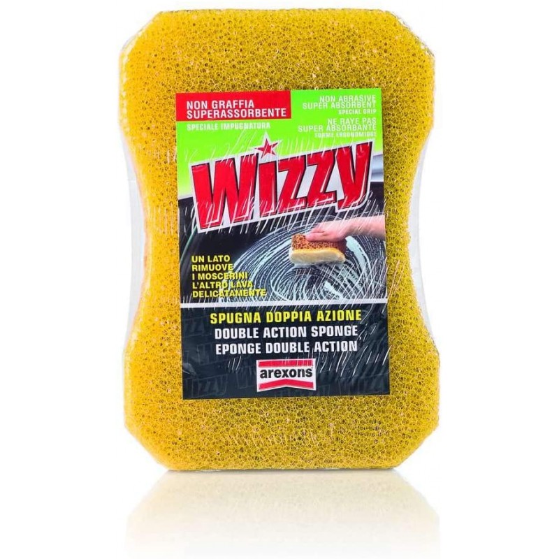 wizzy spugna doppia azione. spugna super assorbente per un lavaggio perfetto, innovativa superficie "high grip" ideale per la pulizia di vetri e cromature.