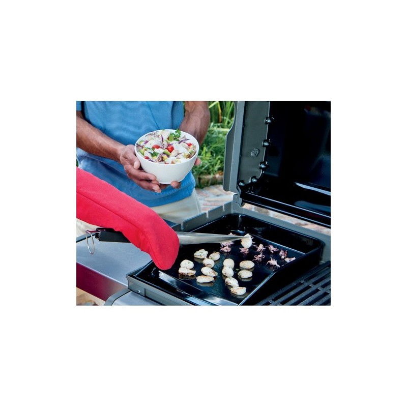 La piastra in ghisa smaltata Weber Inc. è l’accessorio ideale per ampliare le possibilità del tuo barbecue e cucinare con facilità alimenti delicati. Perfetta dalla colazione alla cena, ti permette di preparare frittelle, toast alla francese, uova, verdure, pesce e gamberetti direttamente sulla griglia, ottenendo una cottura uniforme e ricca di sapore.