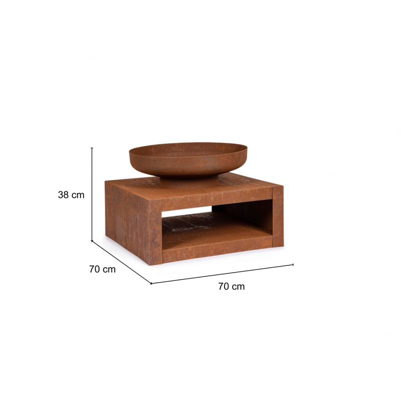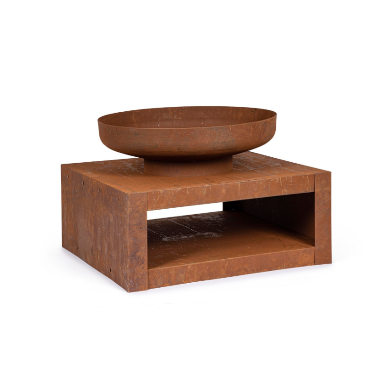 L'acciaio non è verniciato, ma naturalmente ossidato. Questo processo crea un effetto ruggine autentico che si modifica naturalmente a contatto con fuoco, acqua e altri agenti atmosferici