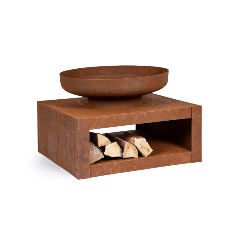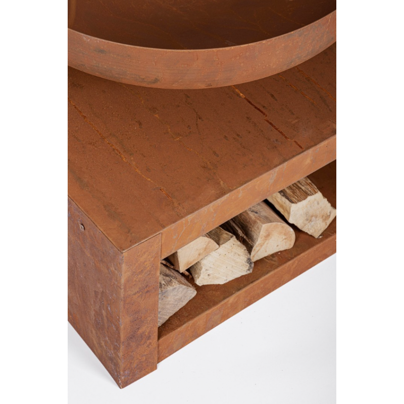 - Braciere Con Porta Legna In Acciaio Effetto Legno Naturale Efesto 70 x 38h cm