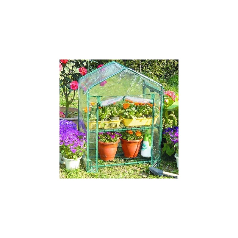 - Serra mini da giardino terrazzo balcone per piante in acciaio e pvc 2 ripiani