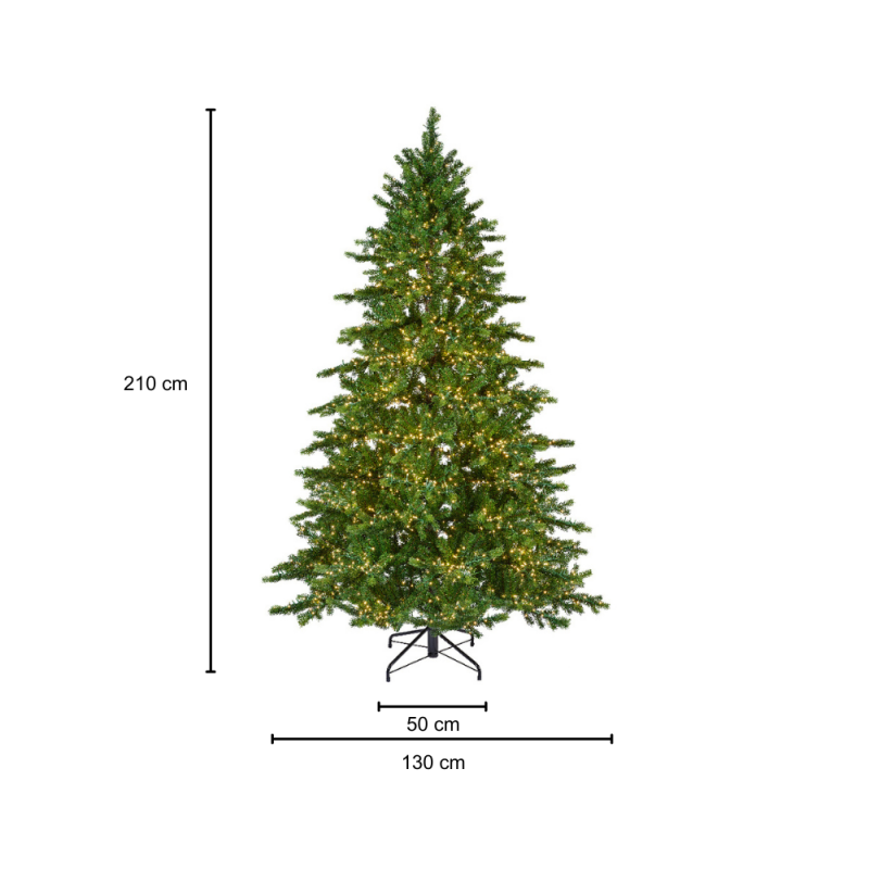 KLULK Albero Di Natale Della Linea Bormio Con 4000 Luci A Led Dalla Tonalità Calda Con 8 Effetti Lampeggianti Resistenti A Schizzi E Spruzzi D'Acqua, Alto 210 Cm Con Diametro Di 130 Cm, Apertura Ad Ombrello Con I Rami Fissabili Direttamente Al Tronco Della Struttura, Molto Folto Avente 2140 Rametti Morbidi Divisi In 844 In PVC E 1296 In Silicone, Ignifugo, 12 Anni Di Garanzia, Base A Croce In Metallo Dal Diametro Di 50 Cm, Ecologico In PVC Vergine Di Qualità, Effetto Realistico