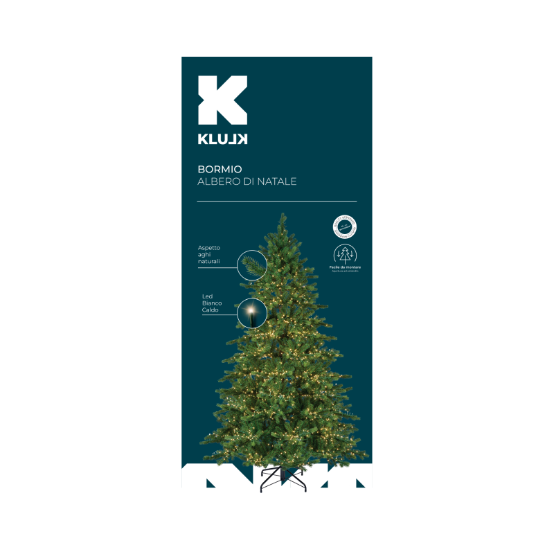 L'Albero Di Natale KLULK Bormio Ha Una Forma Slanciata E Tozza Che Lo Rende Ideale Per Ambienti Di Medie E Grandi Dimensioni. Dona Un Tocco Di Festa E Calore All'Ambiente Circostante Risultando Perfetto Per Case Con Metrature Ampie Che Desiderino Un Vero E Proprio Albero Ardimentoso Per Festeggiare Al Meglio Il Natale