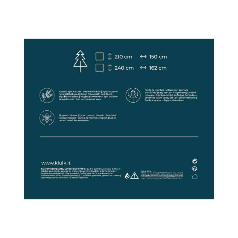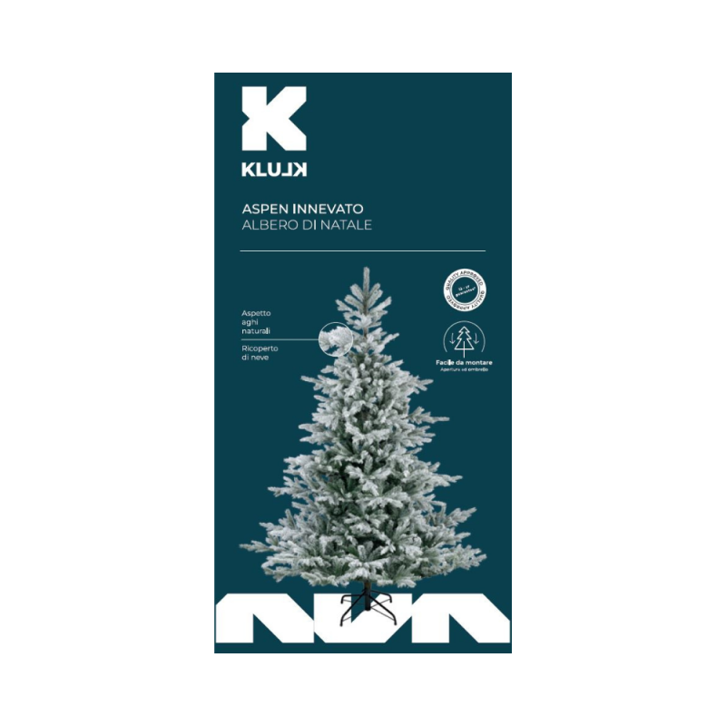 - KLULK Albero Di Natale Innevato Aspen 210 Cm, Diametro 150 Cm, Apertura Ad Ombrello, Ignifugo, 12 Anni Di Garanzia