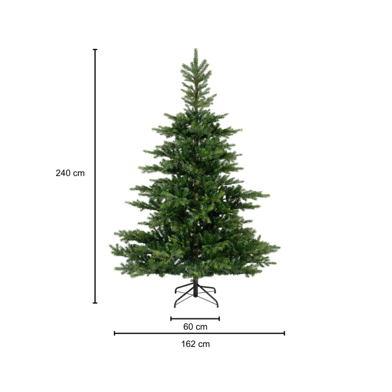 KLULK Albero Di Natale Della Linea Aspen Alto 240 Cm Con Diametro Di 162 Cm, Apertura Ad Ombrello Con I Rami Fissabili Direttamente Al Tronco Della Struttura, Molto Folto Avente 2935 Rametti Morbidi Divisi In 1140 In PVC E 1795 In Silicone, Ignifugo, 12 Anni Di Garanzia, Base A Croce In Metallo Dal Diametro Di 60 Cm, Ecologico In PVC Vergine Di Qualità, Effetto Realistico