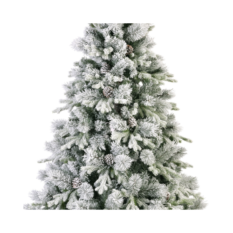 KLULK Albero Di Natale Ortisei Innevato Con Pigne 210 cm, Diametro 138 Cm, Apertura Ad Ombrello, Ignifugo, Garanzia 12 Anni