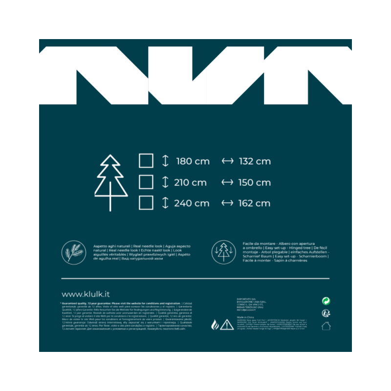 - KLULK Albero Di Natale Aspen 180 Cm, Diametro 132 Cm, Apertura Ad Ombrello, Ignifugo, 12 Anni Di Garanzia