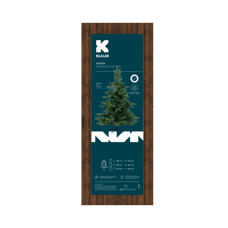 L'Albero Di Natale KLULK Aspen Ha Una Forma Slanciata E Tozza Che Lo Rende Ideale Per Ambienti Di Medie E Grandi Dimensioni. Dona Un Tocco Di Festa E Calore All'Ambiente Circostante Risultando Perfetto Per Case Con Metrature Ampie Che Desiderino Un Vero E Proprio Albero Ardimentoso Per Festeggiare Al Meglio Il Natale