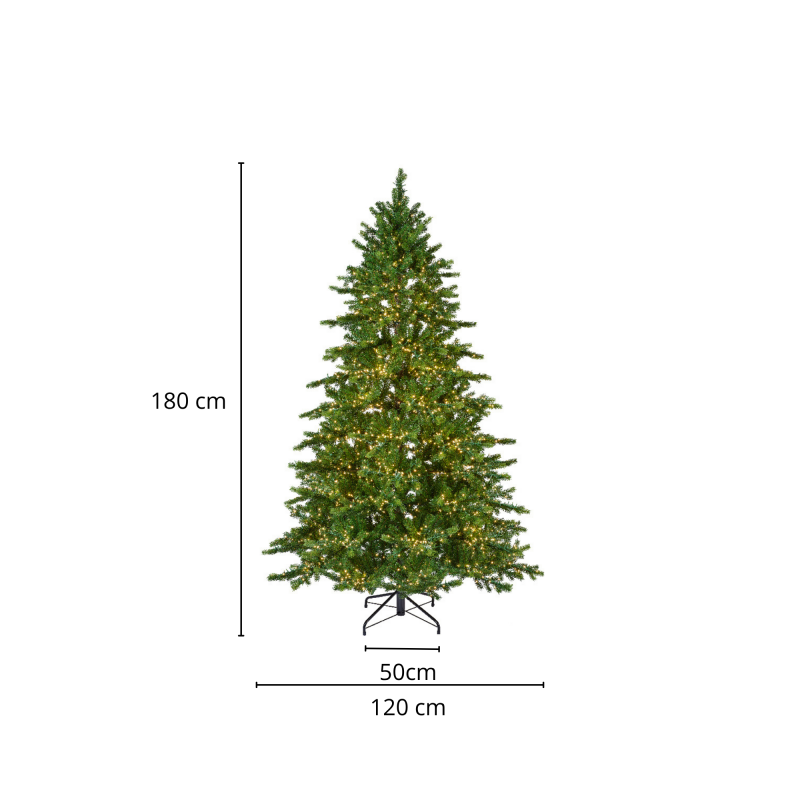 KLULK Albero Di Natale Della Linea Bormio Con 3000 Luci A Led Dalla Tonalità Calda Con 8 Effetti Lampeggianti Resistenti A Schizzi E Spruzzi D'Acqua, Alto 180 Cm Con Diametro Di 120 Cm, Apertura Ad Ombrello Con I Rami Fissabili Direttamente Al Tronco Della Struttura, Molto Folto Avente 1537 Rametti Morbidi Divisi In 547 In PVC E 990 In Silicone, Ignifugo, 12 Anni Di Garanzia, Base A Croce In Metallo Dal Diametro Di 50 Cm, Ecologico In PVC Vergine Di Qualità, Effetto Realistico
