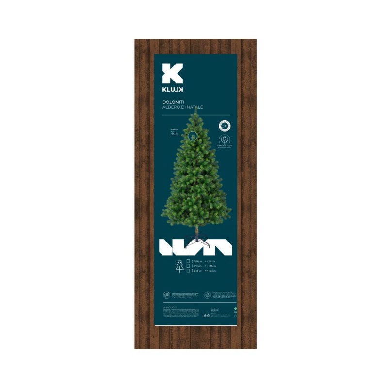 L'Albero Di Natale KLULK Dolomiti Ha Una Forma Slanciata E Tozza Che Lo Rende Ideale Per Ambienti Di Medie E Grandi Dimensioni. Dona Un Tocco Di Festa E Calore All'Ambiente Circostante Risultando Perfetto Per Case Con Metrature Ampie Che Desiderino Un Vero E Proprio Albero Ardimentoso Per Festeggiare Al Meglio Il Natale
