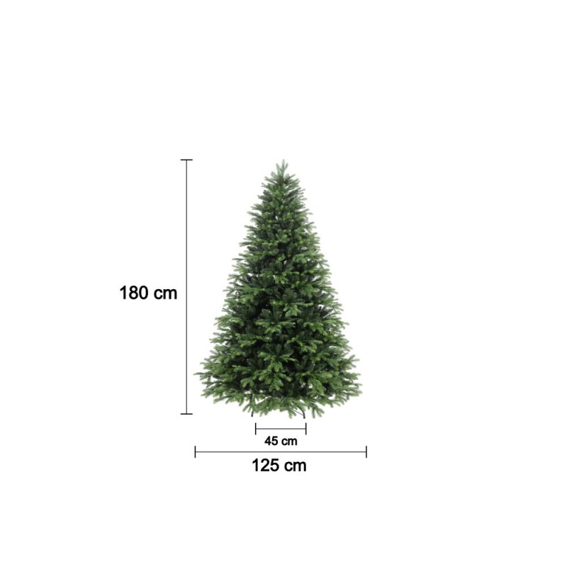 KLULK Albero Di Natale Della Linea Folgaria Alto 180 Cm Con Diametro Di 125 Cm, Apertura Ad Ombrello Con I Rami Fissabili Direttamente Al Tronco Della Struttura, Molto Folto Avente 1700 Rametti Morbidi Divisi In PVC E In Silicone,Rami Pe 357 e Rami Pvc 1343 , Base A Croce In Metallo Dal Diametro Di 45 Cm, Ecologico In PVC Vergine Di Qualità, Effetto Realistico