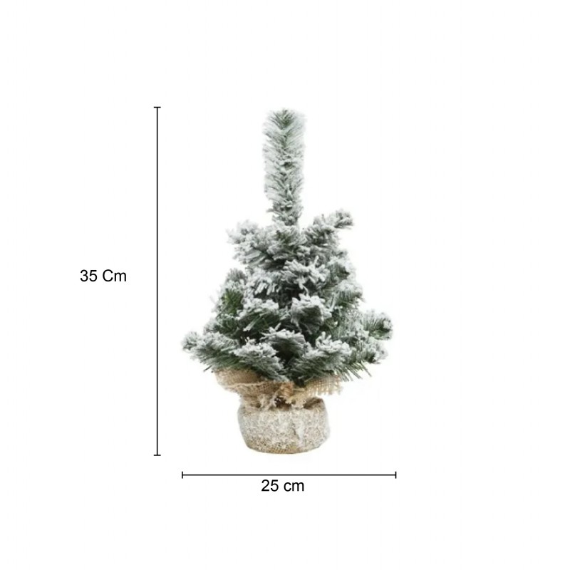 [IL PACCHETTO INCLUDE]: Mini Albero da tavolo Innevato , Dotato 35 Rami, Altezza 25 cm, Diametro 35 cm.