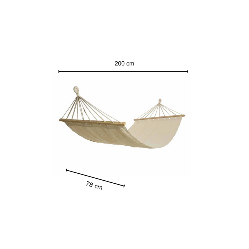 Con Una Lunghezza Di 200 Cm E Una Profondità Di 78 Cm, L'Amaca Elsa Offre Un'Ampia Superficie Di Appoggio, Ideale Per Ospitare Comodamente Una Persona. Potrai Distenderti Completamente E Rilassare Ogni Muscolo Del Tuo Corpo, Cullato Dal Morbido Tessuto E Dal Dondolio Leggero. La Sua Struttura Robusta, Inoltre, è In Grado Di Sopportare Un Peso Massimo Di 120 Kg, Garantendo Sicurezza E Stabilità Anche A Persone Di Corporatura Robusta