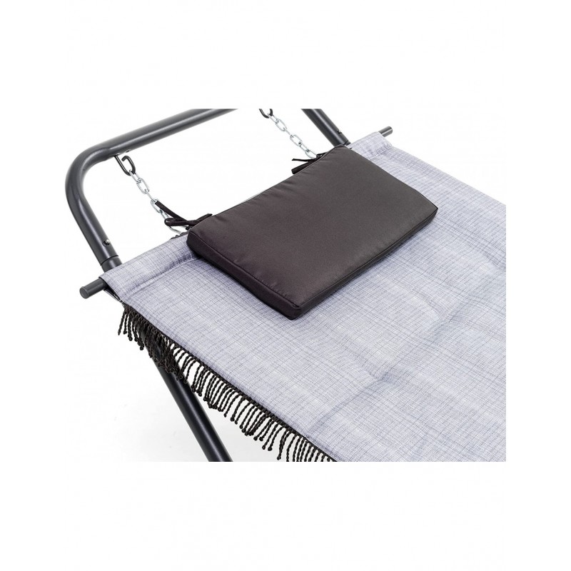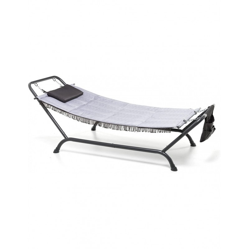 Goditi i migliori momenti di riposo mentre ti dedichi ad una lettura estiva o sorseggi una bevanda. L'amaca bali presenta una struttura realizzata in tubolare di ferro verniciato a polvere epossidica ed e' dotata di un telo imbottito in poliestere. Il cuscino poggiatesta e la sacca portarivista completano l'amaca rendendola piu' confortevole ed invitante. La struttura puo' sopportare un peso massimo di 100 kg. Colore: antracite. Dimensioni in cm: 230 x 98 x 82.