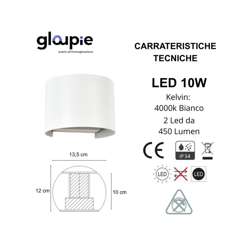 - Gloupie Applique Da Esterno Hobby,Alluminio Bianco,IP54, Potenza Massima 5W Luce Calda 4000K, Forma Mezza Luna