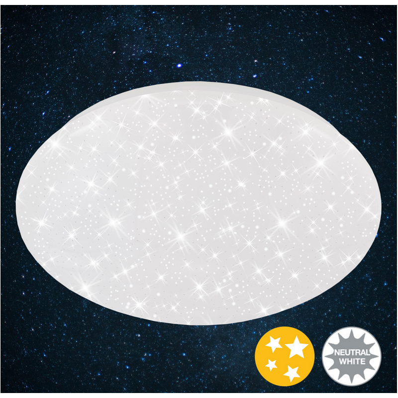 Plafoniera a LED con decoro a stella - Atmosfera accogliente: grazie al decoro con cielo stellato, ideale come lampada a LED per la cameretta/cameretta dei bambini - ma anche come una normale lampada da soggiorno - Facilità di montaggio: la luce a LED è realizzata in plastica e metallo, il che la rende molto leggera e facile da montare - Colore: bianco (lampada), bianco neutro (colore chiaro) - Prestazioni: consumo energetico economico di 12 watt e un'emissione luminosa di 1200 lumen - Dimensioni: 29 x 9,5 cm (diametro x altezza)