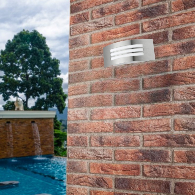 [Qualita' certificata]: Gloupie applique da esterno a parete moderno ade, classe di protezione ip26 con potenza massima 11 w, lunghezza 26,6 cm x profondità 11 cm x altezza 10,2 cm, struttura in acciaio inox anti corrosivo e corpo posteriore in plastica, dotato di attacco universale per lampadine e14