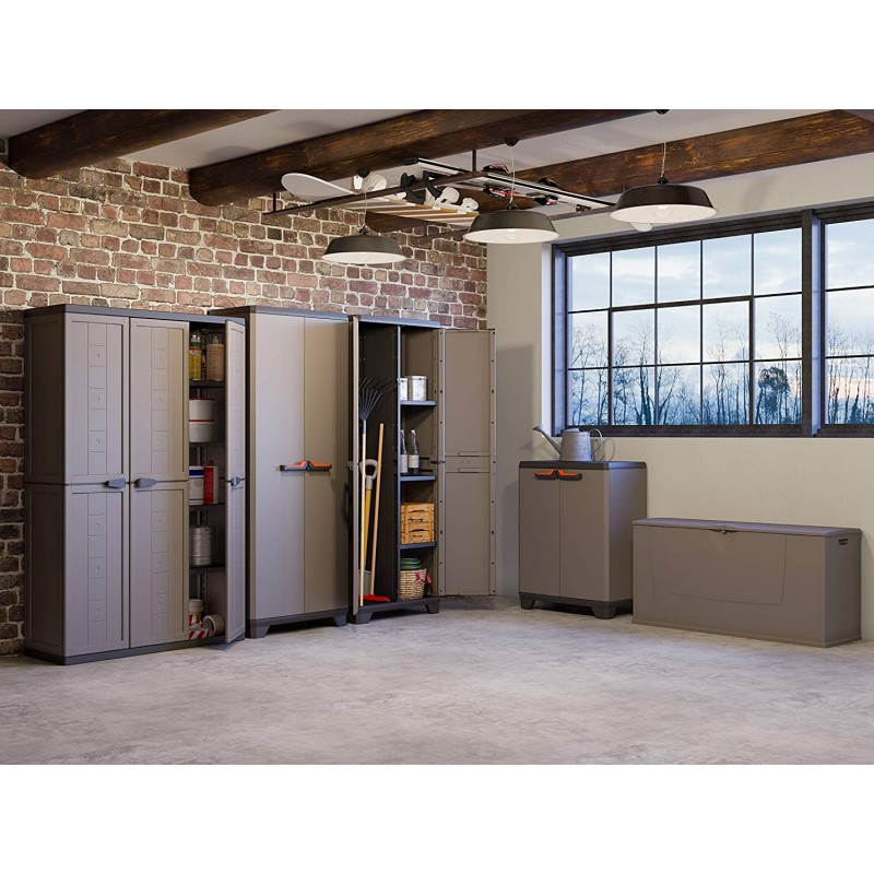 l'armadio basic kis stilo tuttopiani è in resina, restistente al gelo e alle intemperie, composto da 2 ante con 3 piani regolabili