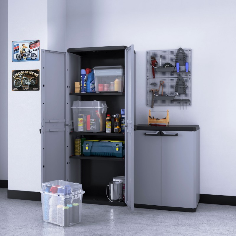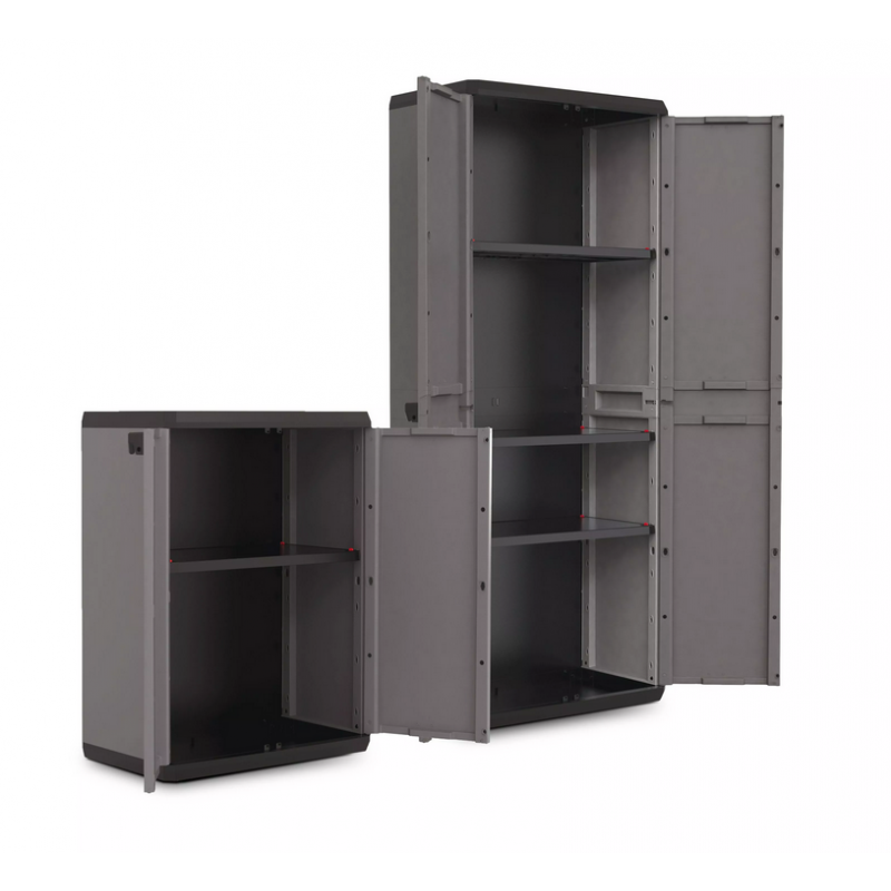 Caratterizzato da un design moderno e funzionale, Più Alto offre una flessibilità tale da renderlo adatto a qualsiasi spazio. Include 3 ripiani regolabili con una portata massima di 15 Kg ciascuno, maniglie con comoda impugnatura e chiusura con predisposizione per lucchetto. Ripiani regolabili Chiusura munita di lucchetto Facile da assemblare Maniglie con comodo impugnatura Ripiani con portata massima di 15 Kg ciascuno