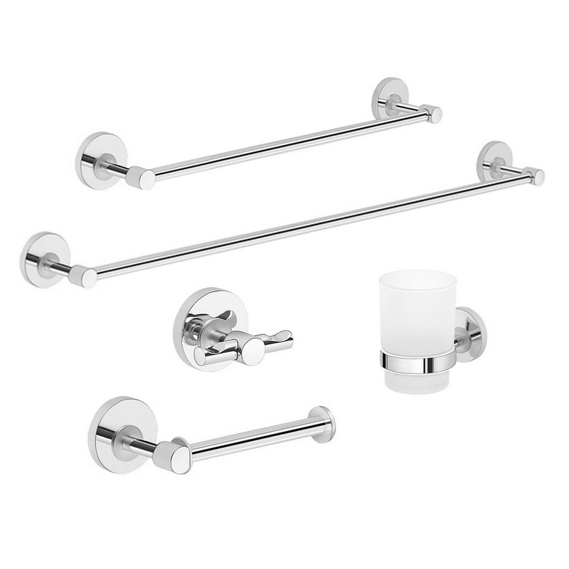 Anche gli spazi piùù ristretti possono risultare funzionali se si utilizzano gli spazi nel modo giusto, come scegliendo un set da accessori a parete che non ingombrerà le superfici di sanitari o altri mobiletti.