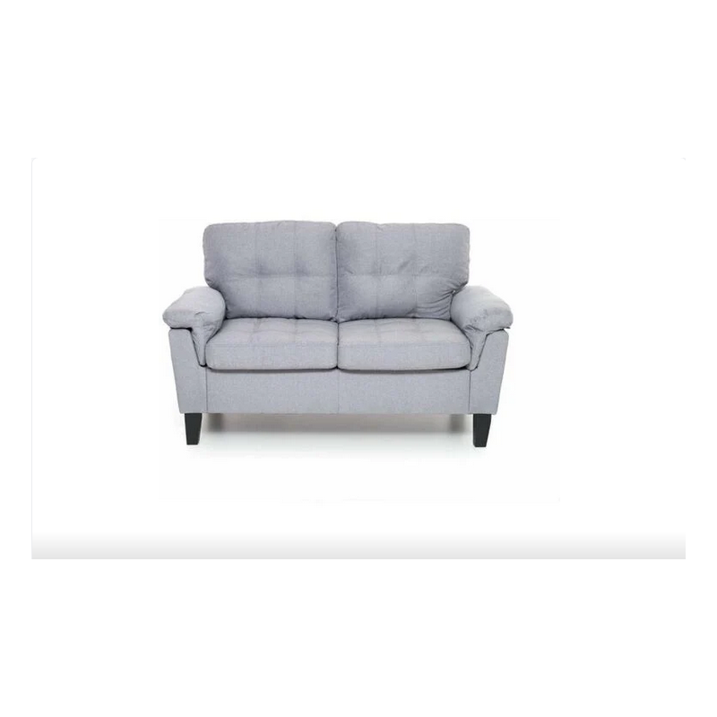 Divano due posti in tessuto color grigio , con eleganti piedini che conferiscono carattere e stile al prodotto.Il divano ha una struttura in legno di abete e multistrato, imbottitura in poliuretano espanso. Il rivestimento è in tessuto grigio e i cuscini sono sfoderabili.