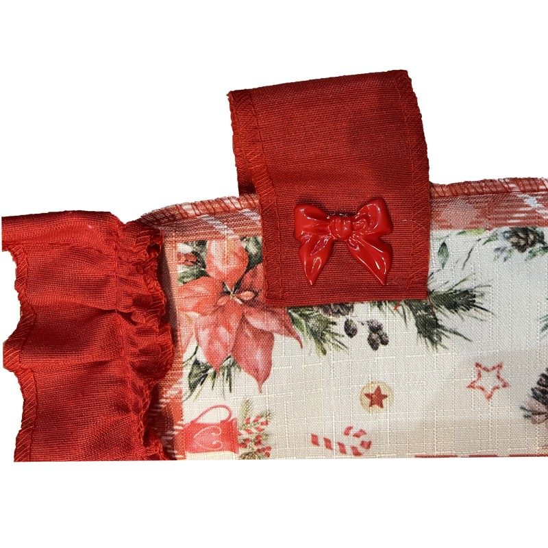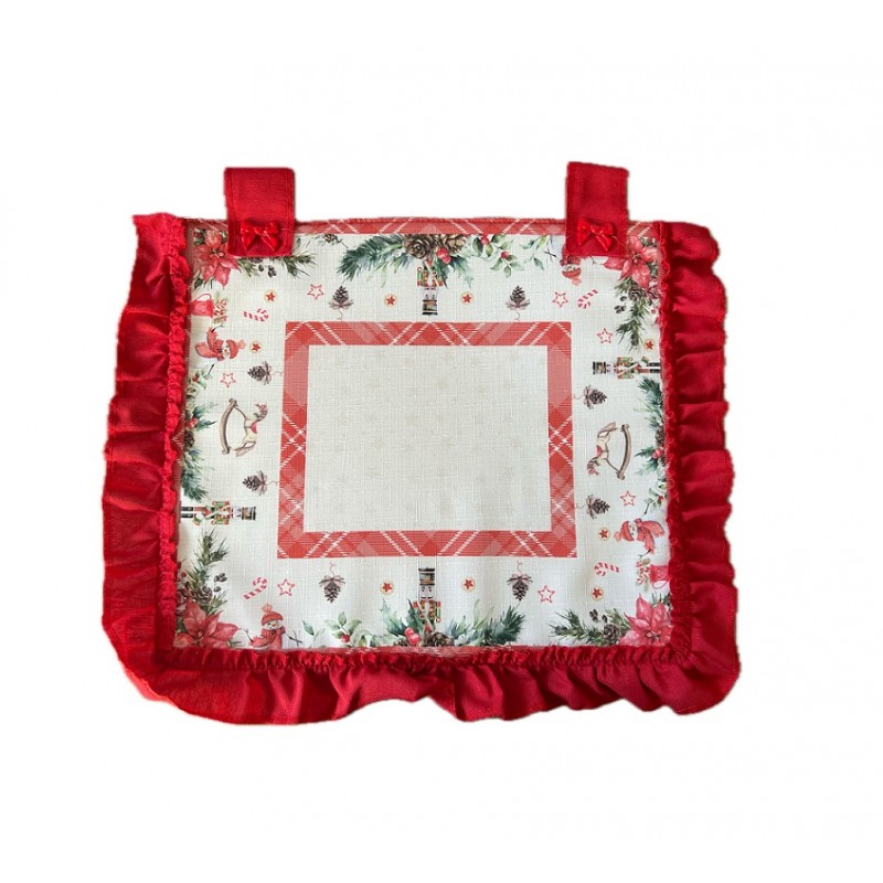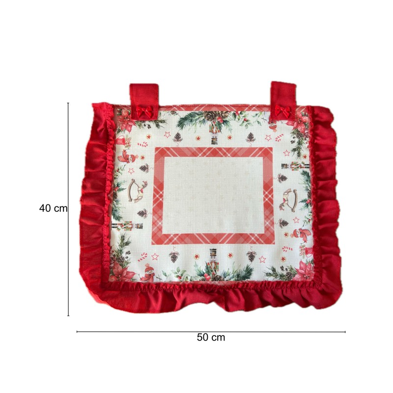 Qualita' Certificata: Gloupie copriforno cucina in tessuto a tema natalizio ornato di fiocchetti rossi sulla parte superiore, linea Lapponia, 40 x 50 cm, chiusura in velcro, universale per tutti i forni, 100% made in italy