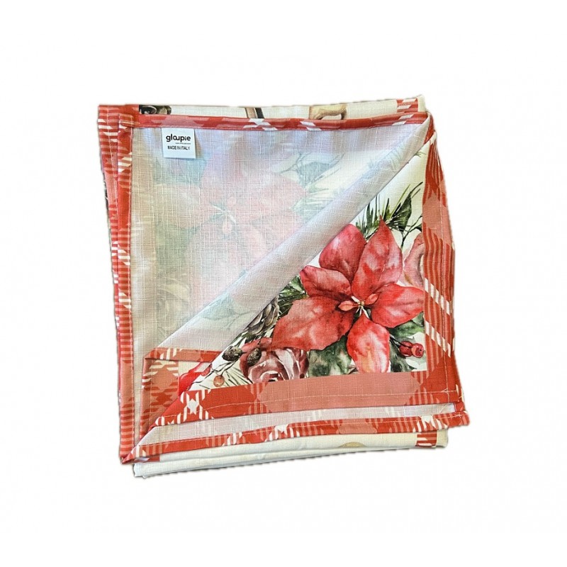 Materiale: La tovaglia natalizia Gloupie linea Lapponia è realizzata in un tessuto di alta qualità, 100% poliestere. Questo materiale è resistente e durevole, e garantisce una buona protezione della tavola da schizzi e macchie. Ma ciò che rende davvero speciale questa tovaglia è il suo design natalizio, che la rende perfetta per creare un'atmosfera festosa a tavola.