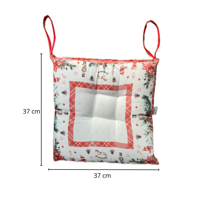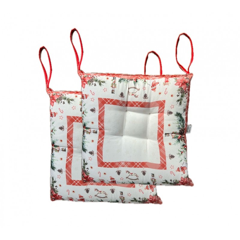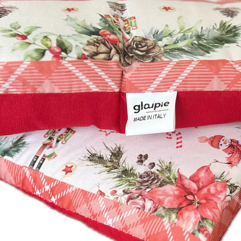 Versatilita': Coppia di cuscini a forma quadrata per sedie da cucina realizzati in tessuto morbido e confortevole, dal caratteristico motivo natalizio per creare un'atmosfera festosa coinvolgente che trasformi la tua zona da pranzo in un luogo di pura gioia e felicità - distinti da una imbottitura in poliestere, un materiale leggero e resistente, garantiscono un comfort ottimale, anche per le sedute più lunghe - 100% made in italy