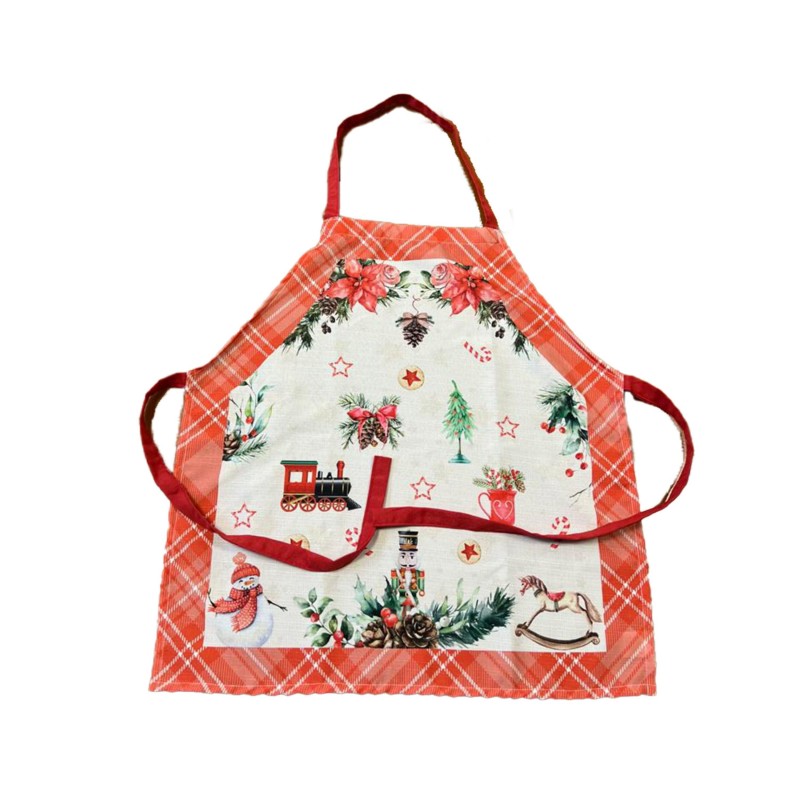 Qualita' Certificata: Gloupie grembiule da cucina per adulti e bambini, in tessuto poliestere con motivo natalizio linea Lapponia, 66x59x24 cm, lavabile in lavatrice, totalmente made in italy