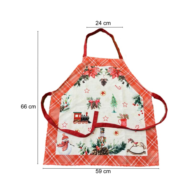 Design: Con questo grembiule porterai un po' di magia del natale in cucina. Il suo design festoso, con i colori vivaci e le immagini allegre, vi farà sorridere mentre preparate i vostri piatti preferiti. Il suo design a tema natalizio, con le immagini di trenini, pupazzi di neve e paesaggi innevati, renderà le vostre preparazioni culinarie ancora più divertenti e coinvolgenti