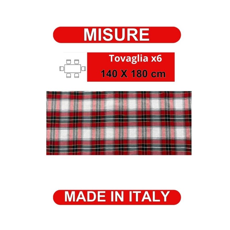 Materiale: La tovaglia natalizia e' realizzata in 50% cotone e 50% poliestere di alta qualità, un mix di materiali che rende il copritavola resistente agli strappi, non si restringe dopo intensi e ripetuti lavaggi, facile da pulire e assolutamente durevole nel tempo - caratteristica particolare del copritavola è la presenza di inserti in lurex color oro presenti sulla trama scozzese della tovaglia, volti a creare un effetto luminoso e scintillante che abbellisca ancor di più la tavola natalizia