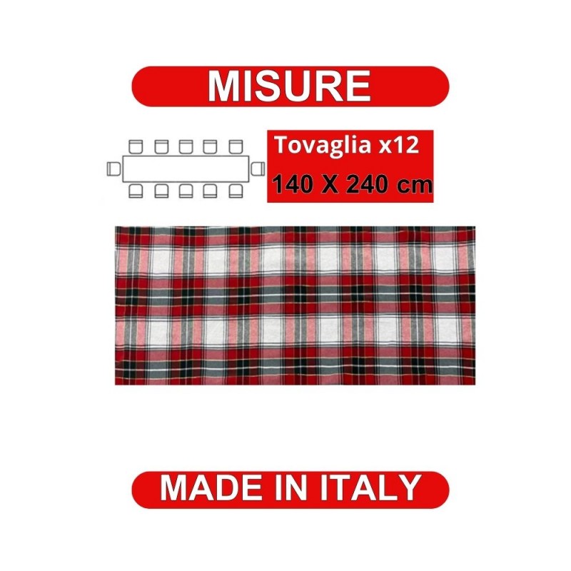 Materiale: La tovaglia natalizia e' realizzata in 50% cotone e 50% poliestere di alta qualità, un mix di materiali che rende il copritavola resistente agli strappi, non si restringe dopo intensi e ripetuti lavaggi, facile da pulire e assolutamente durevole nel tempo - caratteristica particolare del copritavola è la presenza di inserti in lurex color oro presenti sulla trama scozzese della tovaglia, volti a creare un effetto luminoso e scintillante che abbellisca ancor di più la tavola natalizia