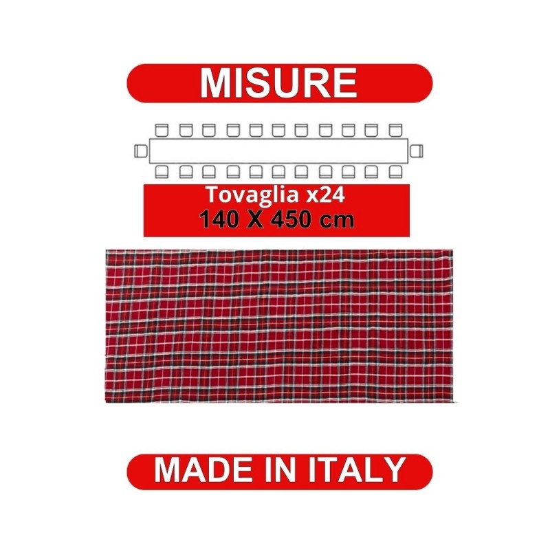 Materiale: La tovaglia natalizia e' realizzata in 50% cotone e 50% poliestere di alta qualità, un mix di materiali che rende il copritavola resistente agli strappi, non si restringe dopo intensi e ripetuti lavaggi, facile da pulire e assolutamente durevole nel tempo - caratteristica particolare del copritavola è la presenza di inserti in lurex color oro presenti sulla trama scozzese della tovaglia, volti a creare un effetto luminoso e scintillante che abbellisca ancor di più la tavola natalizia