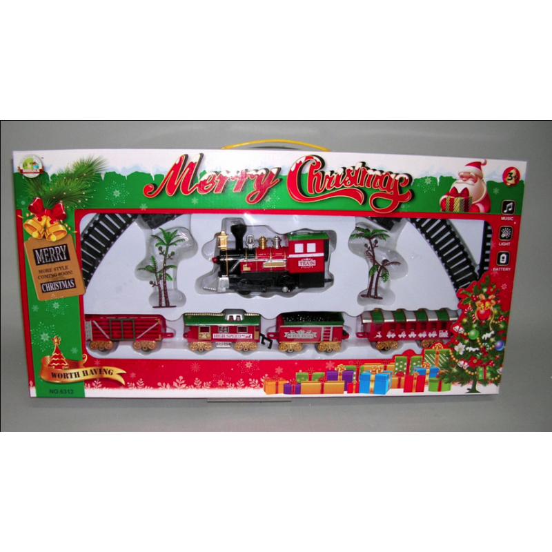 Quest'anno il natale ci gira intorno! un bellissimo trenino merci con locomotiva e vagoni, elettrico, dotato di luci e di una dolce melodia natalizia. Ideale per rendere l'atmosfera ancora più suggestiva. Alimentazione: batterie 2x1.5V "AA" (non incluse)