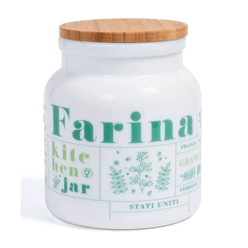 Barattolo victoriana farina in vetro opale colore bianco, decorato con tappo in bambù.