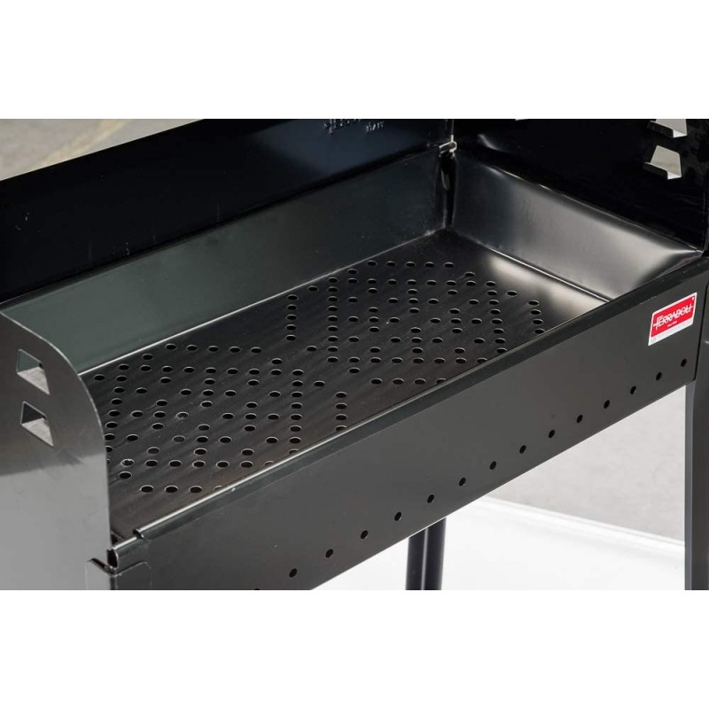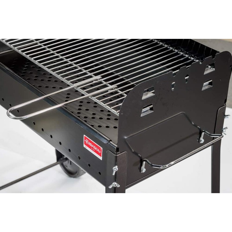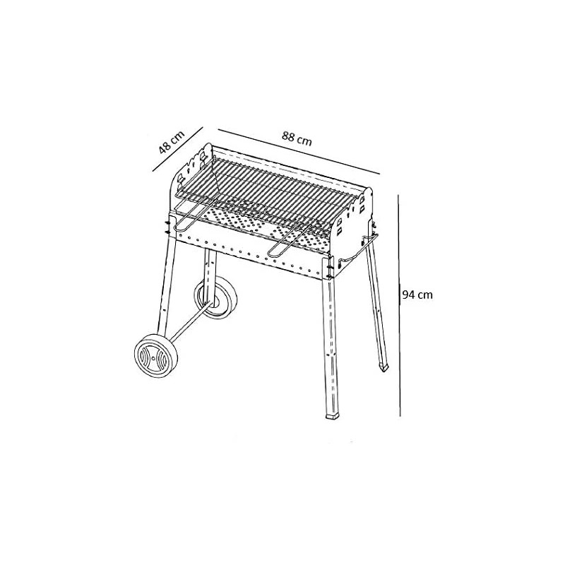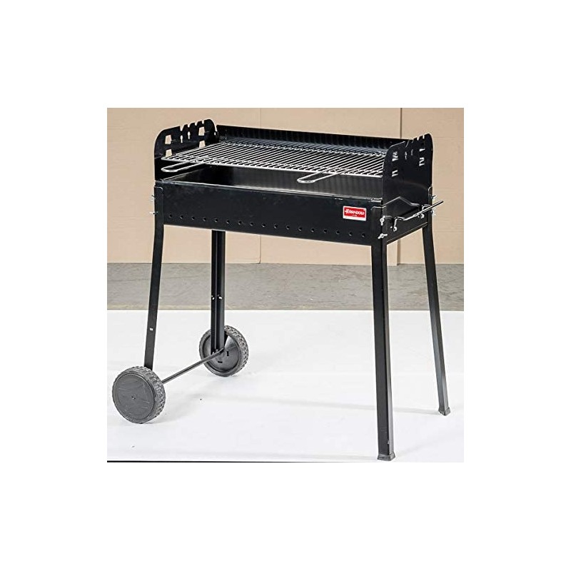 maggiore è dotato di una griglia cromata per alimenti molto grande, delle dimensioni di 75×37 cm, ampiamente protetta da fianchetti paravento su tre lati che svolgono contemporaneamente la funzione di sostegno e posizionamento su tre altezze. il bbq ha certamente una struttura semplice che unisce benissimo qualità e prezzo. il montaggio delle gambe è facile, basta agire sui singoli dadi ad aletta che bloccano le viti di fissaggio, il tutto fatto per la massima stabilità.