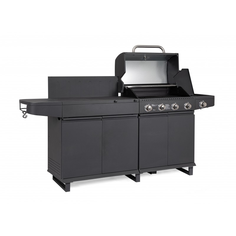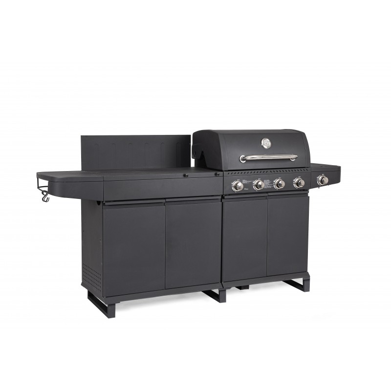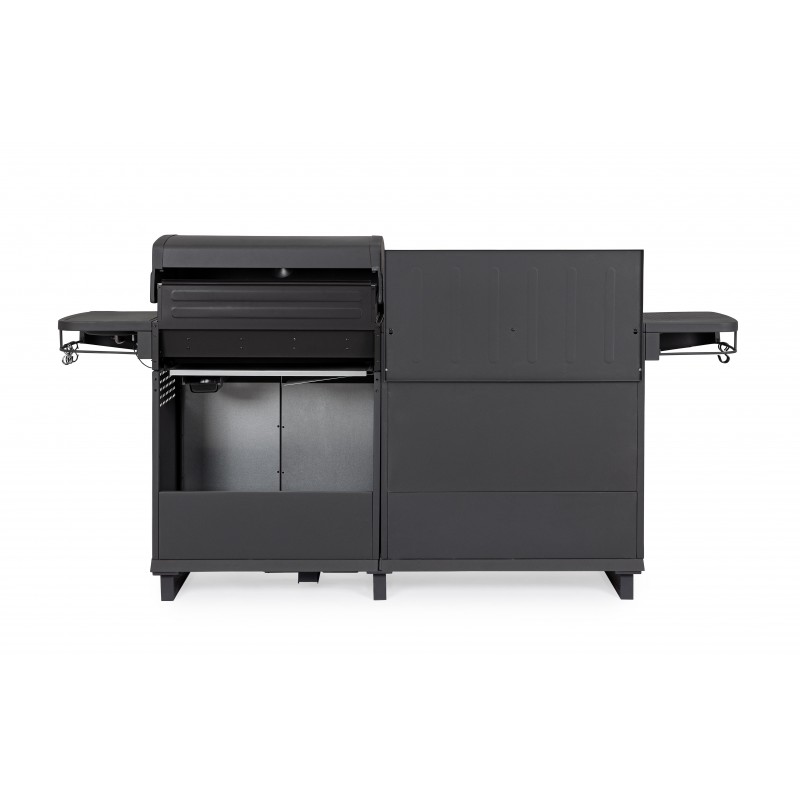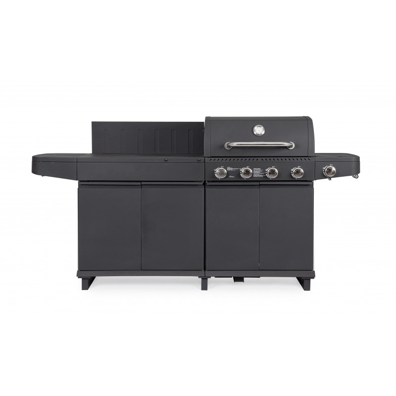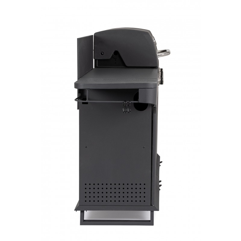 Dotata di un fornello laterale, tavolo da lavoro e ripiani interni e laterali, questa cucina a gas è progettata per offrirti il massimo del comfort e dell'organizzazione durante ogni grigliata o pranzo all'aperto.