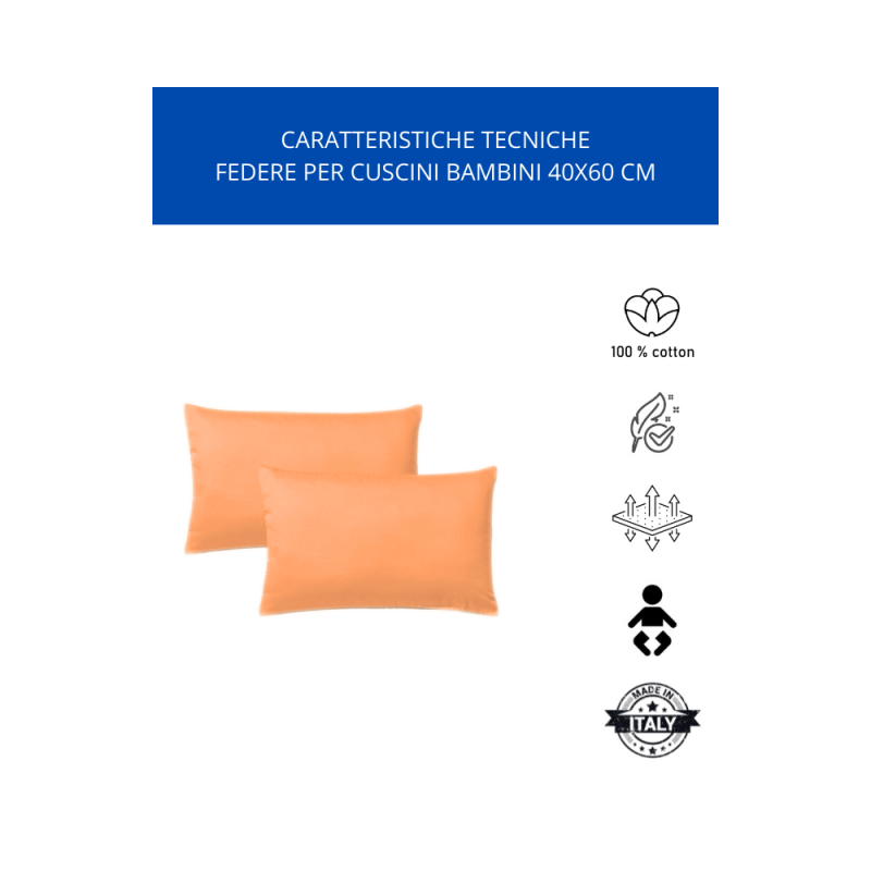 - KLULK Set 2 Federe Per Cuscini Per Bambini 40x60 Cm,In Puro Cotone 100% Fibra Naturale In Tinta Unita Arancio Made In Italy