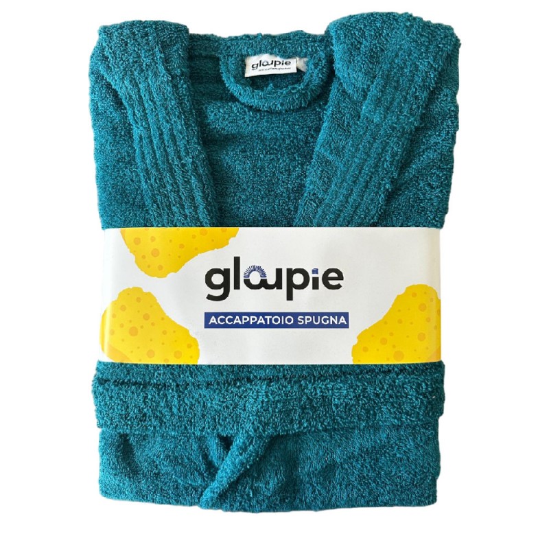 - GLOUPIE Accappatoio Unisex In 100% Spugna Di Puro Cotone In Tinta Unita Dal Color Ottanio Taglia L