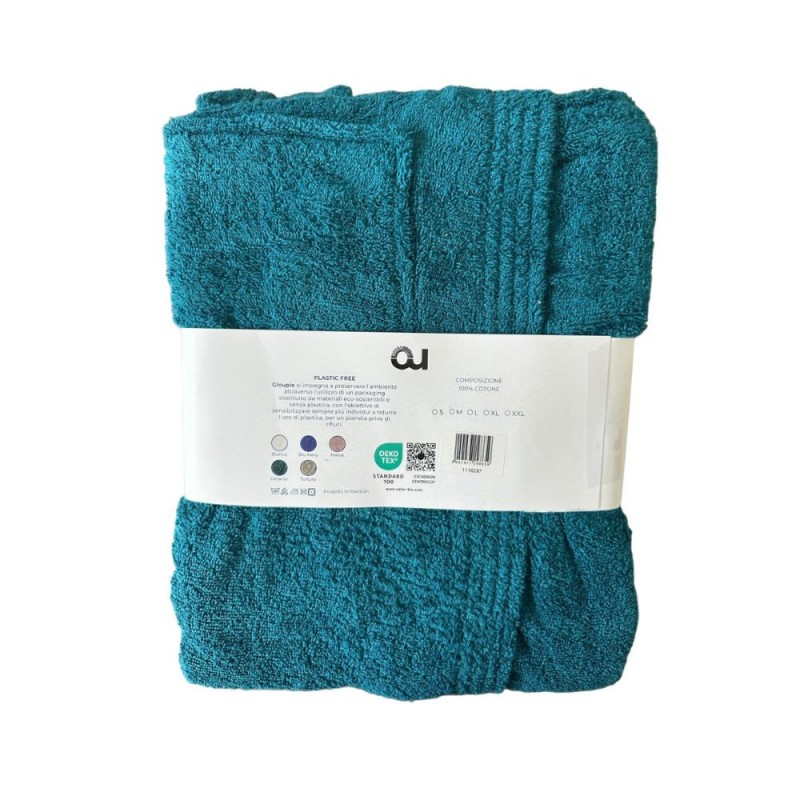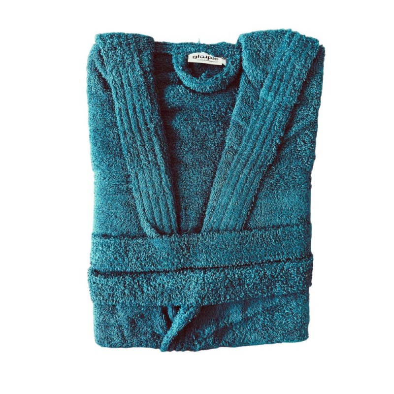 GLOUPIE Accappatoio Unisex In 100% Spugna Di Puro Cotone In Tinta Unita Dal Color Ottanio Taglia L