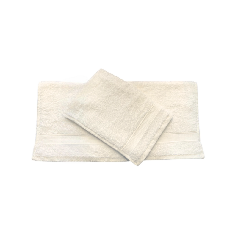 - GLOUPIE Set 2 Asciugamani Bagno Viso E Bidet In 100% Spugna Di Puro Cotone In Tinta Unita Dal Color Latte