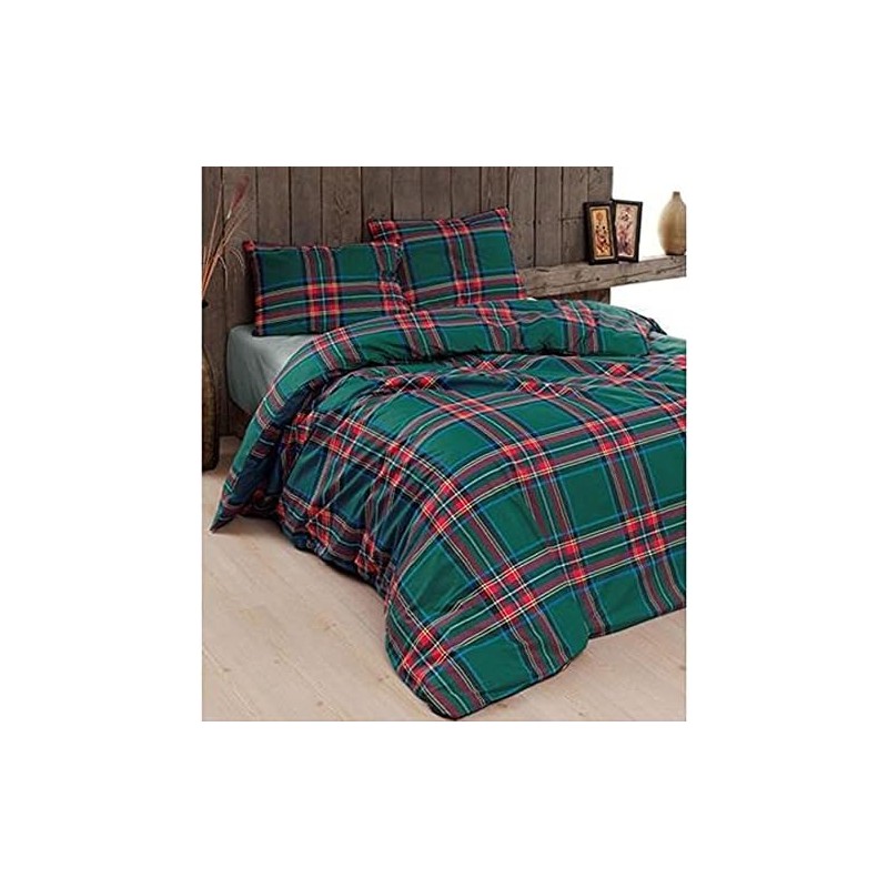 - Parure Copripiumino Matrimoniale Tartan Verde 255x200 cm 100% Cotone Completo di Sacco e Federe