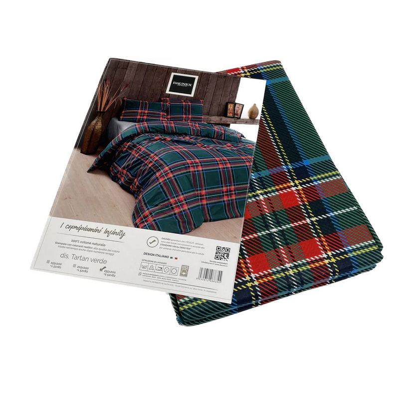 Parure Copripiumino Matrimoniale Tartan Verde 255x200 cm 100% Cotone Completo di Sacco e Federe