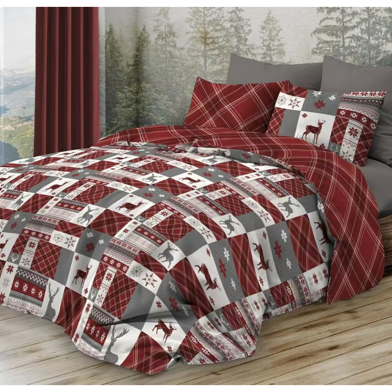 Parure Copripiumino Matrimoniale Canazei Rosso 255x200 cm 100% Cotone Completo di Sacco e Federe