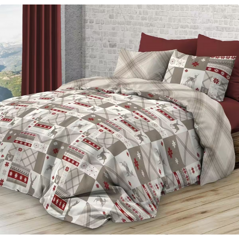 - Parure Copripiumino Matrimoniale Canazei Tortora 255x200 cm 100% Cotone Completo di Sacco e Federe