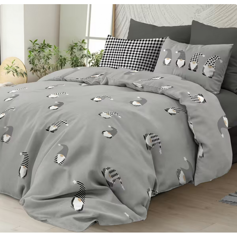 Parure Copripiumino Matrimoniale Hobbit Grigio 255x200 cm 100% Cotone Completo di Sacco e Federe
