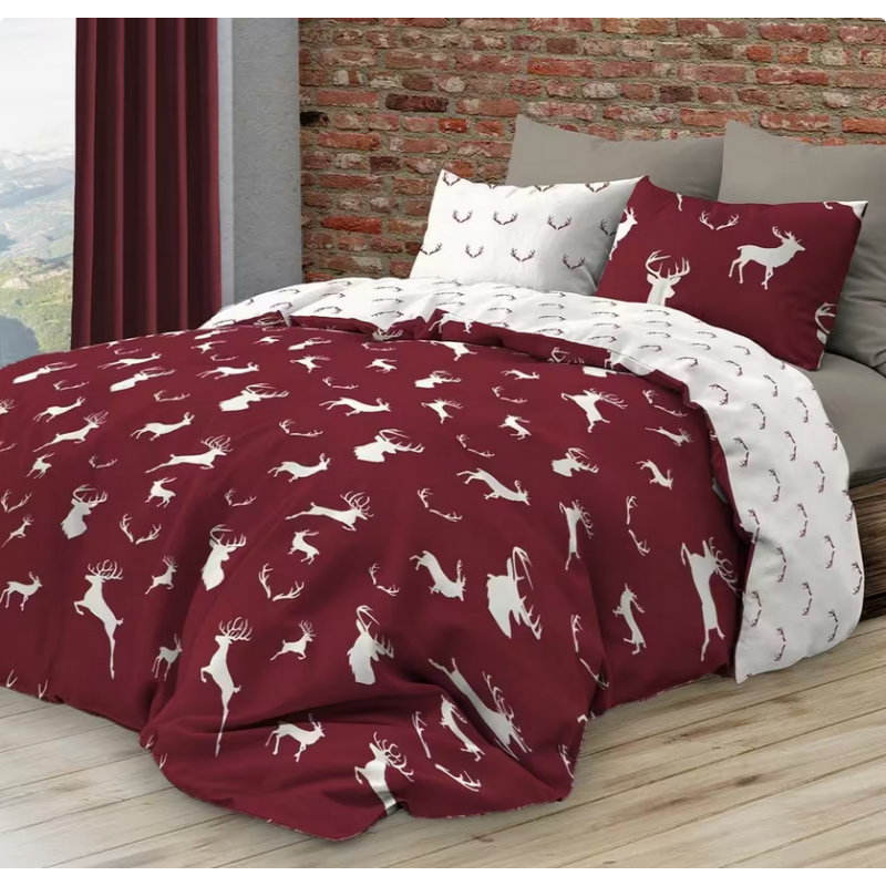 Parure Copripiumino Matrimoniale John Bordeaux 255x200 cm 100% Cotone Completo di Sacco e Federe