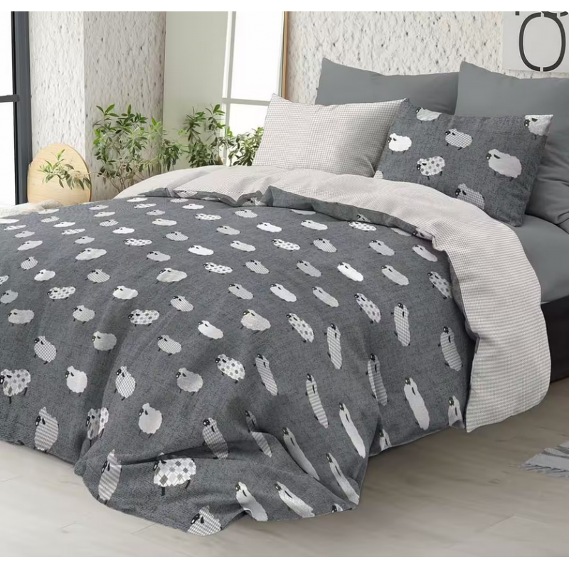 Parure Copripiumino Matrimoniale Pecorelle 255x200 cm 100% Cotone Completo di Sacco e Federe