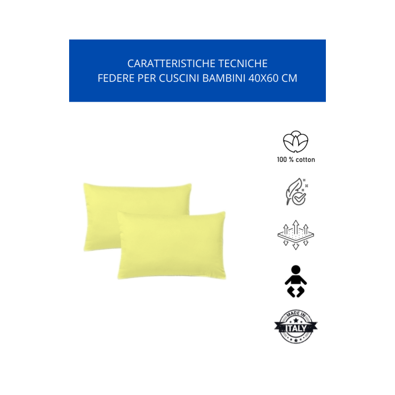 - KLULK Set 4 Federe Per Cuscini Per Bambini 40x60 Cm,In Puro Cotone 100% Fibra Naturale In Tinta Unita Lime, Made In Italy