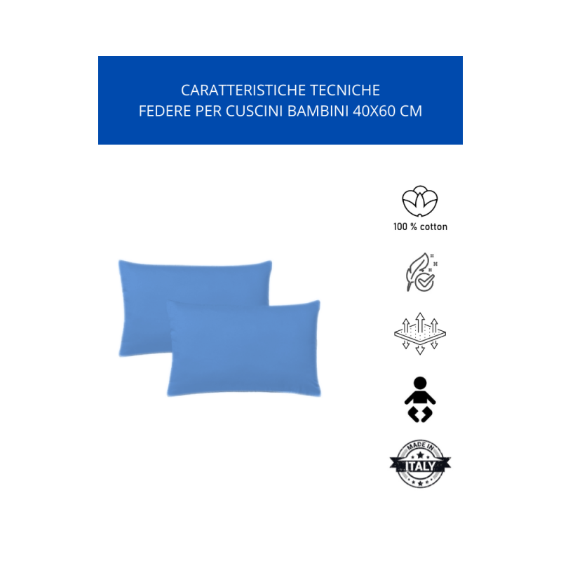 - KLULK Set 4 Federe Per Cuscini Per Bambini 40x60 Cm,In Puro Cotone 100% Fibra Naturale In Tinta Unita Royal Made In Italy